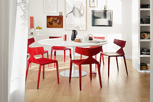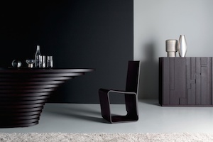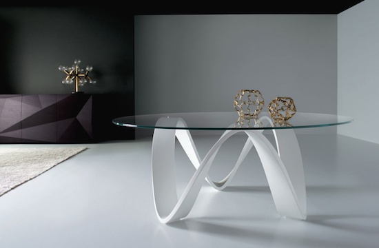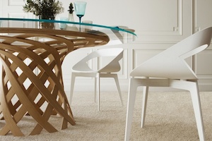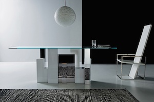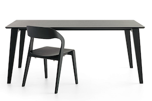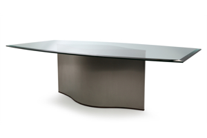 The table CENA shows great strength of character. The bevelled table-top gives it a lightness and dynamic contrasting nicely...